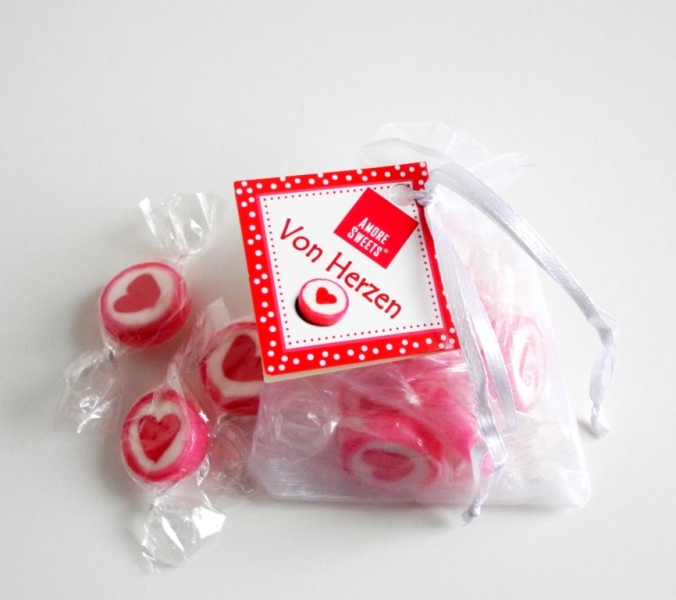 ERSTEN BLICK! Und so entsanden auch z. B. unsere Bonbons mit Herz, die mittlerweile zur Hochzeit als Herzbonbons, zum Valentinstag als Tischdekoration oder beim